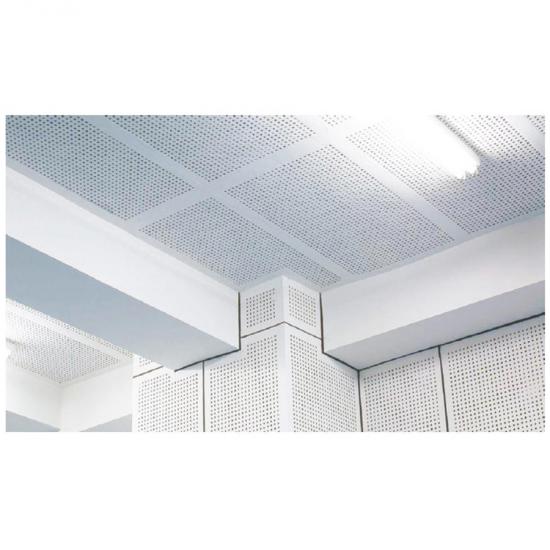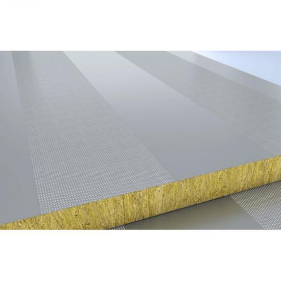 Chapa de aço galvanizado com revestimento colorido (painel externo) + Lã de vidro + Tecido não tecido + Chapa de aço galvanizado perfurada com revestimento colorido (painel interno)